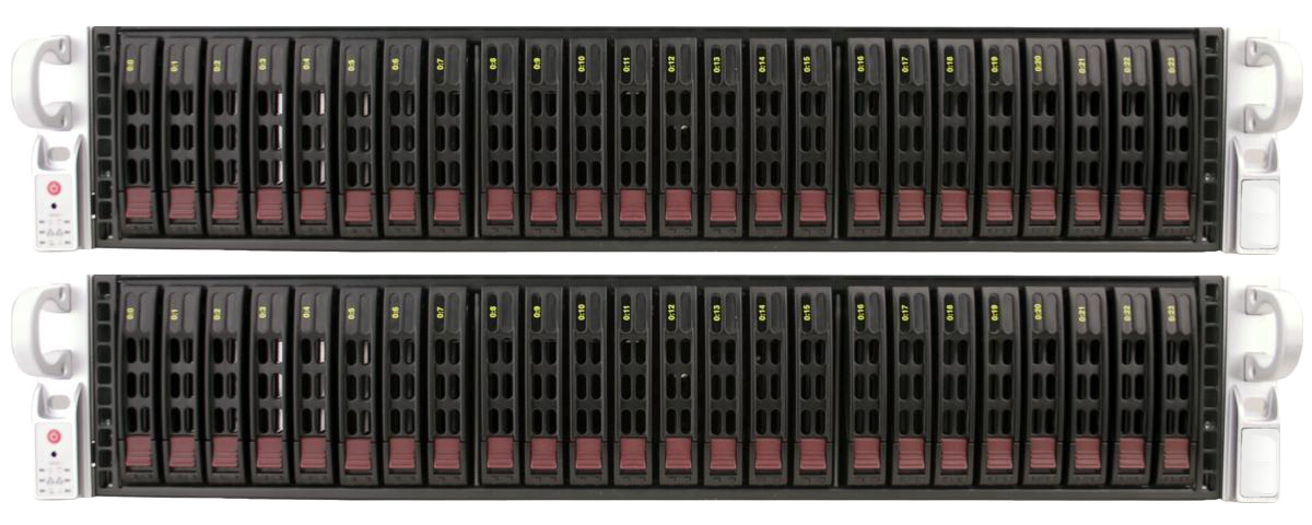 vFleXtor® 1004.2 delivers a self-sufficient, highly available, redundant and fault tolerant computing environment which maximizes the storage and computing of a 4U form factor by offering rackmountable solution including 48 hot-swap 2.5" drive bays for shared storage (2x24 mirrored)